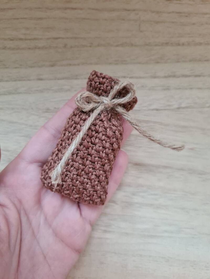 vouw het lapje dubbel en haak hem dicht met hv , dat doe je ook bij de onderkant en vouw het zakje binnenstebuiten