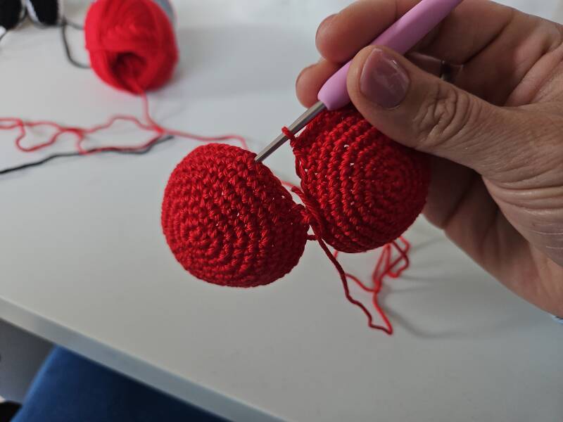 Het 2e deel hechten we niet af maar we gaan de delen aan elkaar haken,
